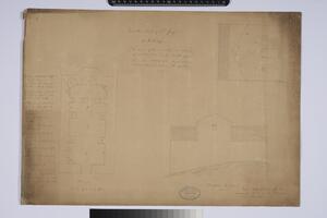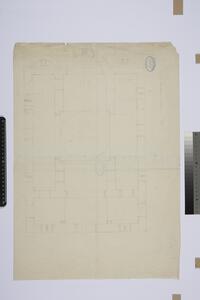Ground plan. This is the preliminary drawing of an unidentified cross-in-square church. The printed drawing of a building's façade survives on the reverse. Not certain if its from Arcadia.
