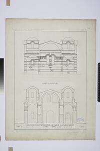 Part of elevation (sections of the lower part of the church). This is a preliminary drawing. Further annotation in pencil survives.