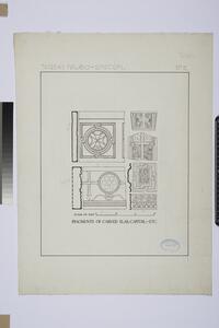 Fragments of carved slabs and capitals. This is a preliminary drawing. It is entitled in pencil:'Tegea - Palaeo-Episcopi'. It is labelled in ink:'Fragments of Carved Slab, Capital,- Etc.'. It is numbered in pencil (no 5) in the upper right-hand corner.