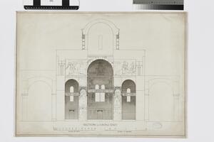 Transverse section looking east with iconography. This is a preliminary drawing. I This drawing was part of the 1936 Exbhitiion at the Royal Academy and was panel 508 in the catalogue