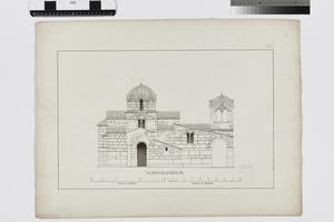 South elevation (?). This is a preliminary drawing. It is entitled in ink:'Church of S. Sophia Monemvasia.