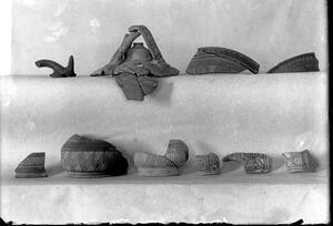 Part of a collection of images from Wace & Thompson's excavation at Tsangli 1910. The original description in the SPHS register reads: "Wace and Thompson: Prehist. Thessaly, Terra Cotta figurines from Tsangli".