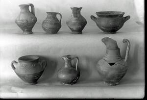 Part of a collection of images from Wace and Thompson's excavations at Halos/Halmyro 1912. The original description in the SPHS register reads: "Halmyro: Thessaly, early iron age vases from tomb enclosure near city wall".