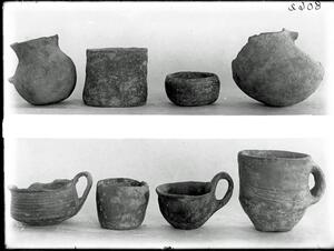 Part of a collection of images from Wace & Thompson's excavation at Tsangli 1910. The original description in the SPHS register reads: "Wace and Thompson: Prehist. Thessaly, Vases from Tsangli, later undecorated".