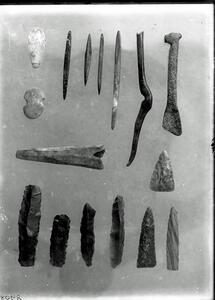 Part of a collection of images of from Wace, Droop & Thompson's excavations at the site of Zerelia in 1908. The original description in the SPHS register reads: "Thessaly, Zerelia, celts".