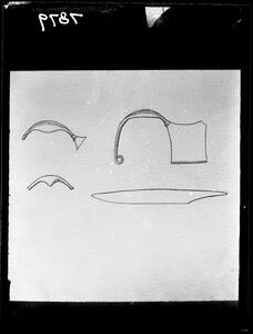 Part of a collection of images from Wace and Thompson's excavations at Halos/Halmyro 1912. The original description in the SPHS register reads: "Halmyro: Thessaly. bronze fibulae and iron knife blades".