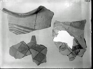 Part of a collection of images from the 1909 excavations at Lianokladi by Wace and Thompson. The original description in the SPHS register reads: "Wace & Thompson, Prehist. Thess: Lianokladhi I red on white ware".