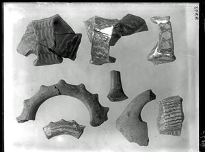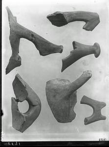 Part of a collection of images from the 1909 excavations at Lianokladi by Wace and Thompson. The original description in the SPHS register reads: "Wace & Thompson, Prehist. Thess: Lianokladhi I fragments of handles".