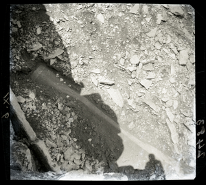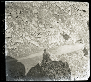 Part of a series of images from the island of Thasos by John ff. Baker-Penoyre during his visit in 1907 to map areas of archaeological interest, particularly the site of Limena, and to conduct investigations of ancient architecture. The original description of the image in the SPHS register reads: "Thasos: Alyki: Hellenic site between Alyki and Έχίδια, pithos fragment".