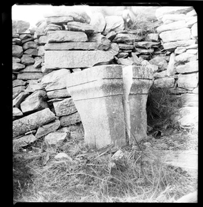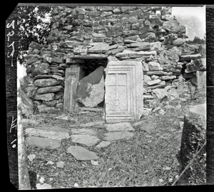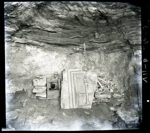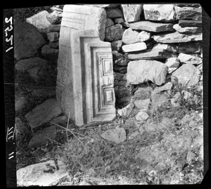 Part of a series of images from the island of Thasos by John ff. Baker-Penoyre during his visit in 1907 to map areas of archaeological interest, particularly the site of Limena, and to conduct investigations of ancient architecture. The original description of the image in the SPHS register reads: "Thasos: Astris, ancient altar in ruined church".