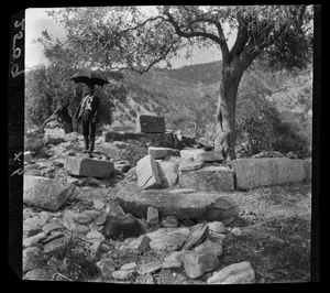 Part of a series of images from the island of Thasos by John ff. Baker-Penoyre during his visit in 1907 to map areas of archaeological interest, particularly the site of Limena, and to conduct investigations of ancient architecture. The original description of the image in the SPHS register reads: "Thasos: Στο Λουτρο".