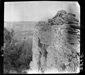 Part of a series of images from the island of Thasos by John ff. Baker-Penoyre during his visit in 1907 to map areas of archaeological interest, particularly the site of Limena, and to conduct investigations of ancient architecture. The original description of the image in the SPHS register reads: "Thasos: Castro (near) church of Άγιος Στράτης".