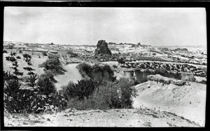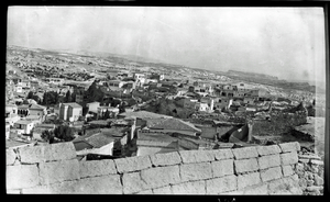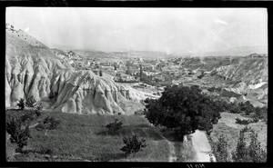 Part of a collection of images from Dawkins' travel to Cappadocia and Pharasa between 1909 and 1911. The original description in the SPHS register reads: "Sinasos: with Urgub in distance". The SPHS negative register also indicates this negative is missing.
