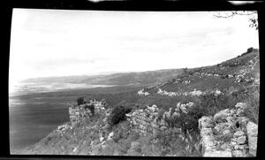 Part of a collection of images from Halliday's travels around Crete following the excavations at Kamares Cave in 1913. The original description in the SPHS register reads: "Arkadhi: (Crete) from S.W".