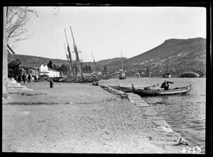 Part of a set of images taken by F.W. Hasluck in 1908 when he visited Aenos, Phocaea, Lemnos and Mytilene to document Frankish monuments. The original description in the SPHS register reads: "Phocaea: the greater harbour".