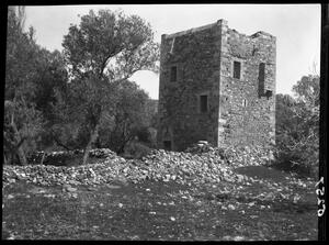Part of a set of images taken by F.W. Hasluck in 1908 when he visited Aenos, Phocaea, Lemnos and Mytilene to document Frankish monuments. The original description in the SPHS register reads: "Phocaea: 'tower' outside the town".
