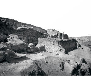 Part of a group of images from explorations and excavations on the island of Melos conducted by the British School at Athens from 1896 to 1899. The original description in the SPHS register reads: "Melos: view of regio III from N. (a) from well E., (b) from W., (c) from S., (d) excav. int. of regio I". Four negatives were assigned the same SPHS negative number, but all the views are different. Recorded in the SPHS register as 4078 (a).