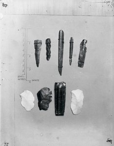 Part of a group of images from explorations and excavations on the island of Melos conducted by the British School at Athens from 1896 to 1899. The original description in the SPHS register reads: "Melos: Phylakopi, obsidian knives".