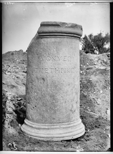 Part of a group of images from explorations and excavations on the island of Melos conducted by the British School at Athens from 1896 to 1899. The original description in the SPHS register reads: "Melos: Tramythia, & Dionysos altar".