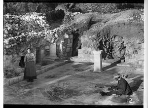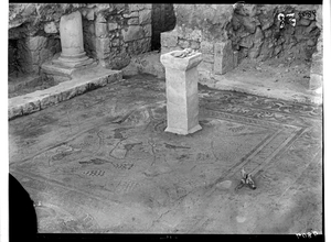 Part of a group of images from explorations and excavations on the island of Melos conducted by the British School at Athens from 1896 to 1899. The original description in the SPHS register reads: "Melos: mosaic, altar end".