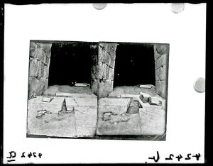 Part of a collection of images of the BSA's 1920s excavations at Mycenae. The original description in the SPHS register reads: "Mycenae: South House the closed door".