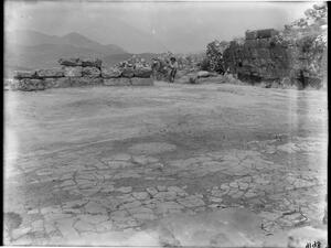 Part of a collection of images of the BSA's 1920s excavations at Mycenae. The original description in the SPHS register reads: "Mycenae: palace, court". An annotation in register indicates that though the entry has been struck out with a line is is "NOT withdrawn".