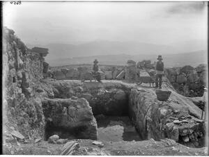 Part of a collection of images of the BSA's 1920s excavations at Mycenae. The original description in the SPHS register reads: "Mycenae". An annotation in register indicates that though the entry has been struck out with a line is is "NOT withdrawn".