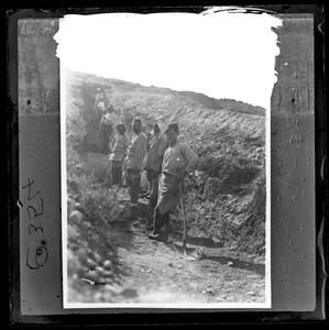 Part of a collection of images of the BSA's 1920s excavations at Mycenae. The original description in the SPHS negative register reads: "Mycenae: Tomb 505, digging dromos". Recorded in the register as from the 1921 season.