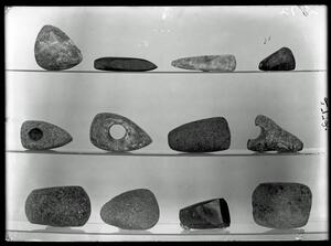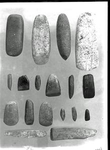 Part of a collection of images from Wace & Thompson's excavation at Tsangli 1910. The original description in the SPHS register reads: "Wace and Thompson Prehist. Thess. Pp118-119 stone axes from Tsangli".