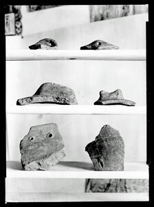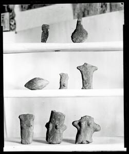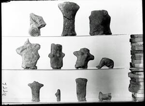 Part of a collection of images of from Wace, Droop & Thompson's excavations at the site of Zerelia in 1908. The original description in the SPHS register reads: "Thessaly, Zerelia, 1) stone idols 2) sling bullets 3) T.C. statuette".