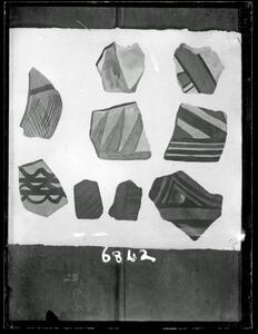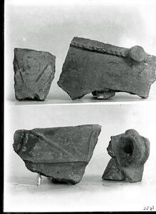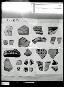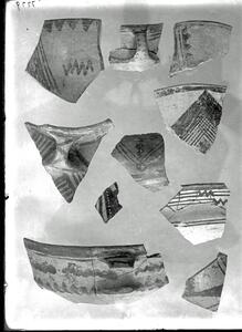 Part of a collection of images of from Wace, Droop & Thompson's excavations at the site of Zerelia in 1908. The original description in the SPHS register reads: "Thessaly: Zerelia, later printed pottery".
