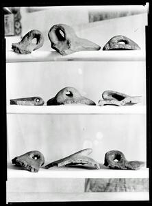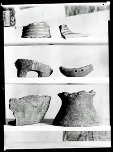 Part of a collection of images of from Wace, Droop & Thompson's excavations at the site of Zerelia 1908. The original description in the SPHS register reads: "Thessaly: Zerelia, types of pottery with holes bored".
