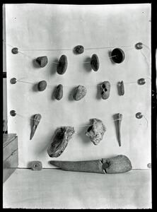 Part of a collection of images of from Wace, Droop & Thompson's excavations at the site of Zerelia 1908. The original description in the SPHS register reads: "Thessaly: Zerelia, stone polishers, pounders etc".