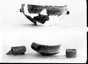 Part of a collection of images of from Wace, Droop & Thompson's excavations at the site of Zerelia in 1908. The original description in the SPHS register reads: "Zerelia: bowl from settlement 7".