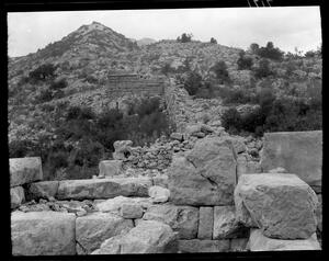 Part of a collection of images of Woodward's travels with Ormerod to SW Asia Minor in 1910 (BSA 16: 76-136; 295). The original description in the SPHS register reads: "Termessus: major Pisidiae. wall across approach on N. side".