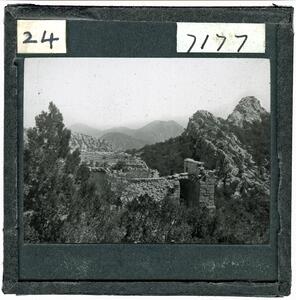 Part of a collection of images of Woodward's travels with Ormerod to SW Asia Minor in 1910 (BSA 16: 76-136; 295). The original description in the SPHS register reads: "Termessus: major Pisidiae. wall across pass, 2 hrs below Termessus".