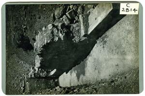 Part of the collection of images, 1924-1927, of the British School at Athens excavations at Sparta, Laconia. The original description in the SPHS register reads: ""Sparta 1924-25, Theatre. Marble base in form of ship - completed".