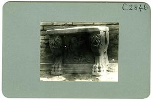 Part of the collection of images, 1924-1927, of the British School at Athens excavations at Sparta, Laconia. The original description in the SPHS register reads: "Sparta 1927, Theatre. Nymphaeum, marble seat, with eagle in relief, in situ at".