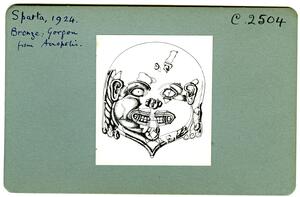 Part of the collection of images, 1924-1927, of the British School at Athens excavations at Sparta, Laconia. The original description in the SPHS register reads: "Sparta, 1924, Gorgon"