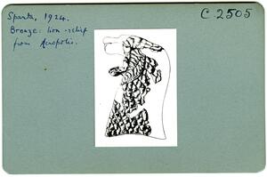 Part of the collection of images, 1924-1927, of the British School at Athens excavations at Sparta, Laconia. The original description in the SPHS register reads: "Sparta, 1924, Lion".