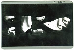 Part of the collection of images, 1924-1927, of the British School at Athens excavations at Sparta, Laconia. The original description in the SPHS register reads: "Sparta 1924-27, Acropolis. Pottery, Laconian II. Handles and protomai".