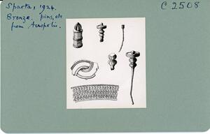 Part of the collection of images, 1924-1927, of the British School at Athens excavations at Sparta, Laconia. The original description in the SPHS register reads: "Sparta, 1924, pins &c."