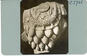 Part of the collection of images, 1924-1927, of the British School at Athens excavations at Sparta, Laconia. The original description in the SPHS register reads: "Sparta, 1924, Theatre. Corinthian capital found at W end of stage".