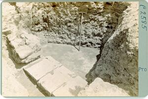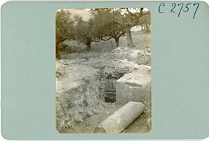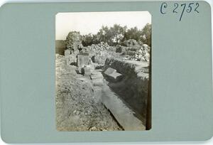 Part of the collection of images, 1924-1927, of the British School at Athens excavations at Sparta, Laconia. The original description in the SPHS register reads: "Sparta, 1925. Theatre. Stage, W end - almost as C 2583".
