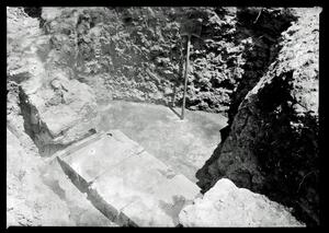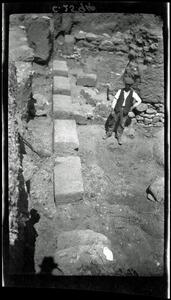 Part of the collection of images, 1924-1927, of the British School at Athens excavations at Sparta, Laconia. The original description in the SPHS register reads: "Sparta, 1926. Bastion of East outer stairs, Theatre".