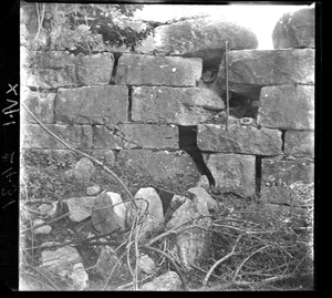 Part of a series of images from the island of Thasos by John ff. Baker-Penoyre during his visit in 1907 to map areas of archaeological interest, particularly the site of Limena, and to conduct investigations of ancient architecture. The original description of the image in the SPHS register reads: "Thasos: Limenas, Acropolis. West wall, drawbridge gate".