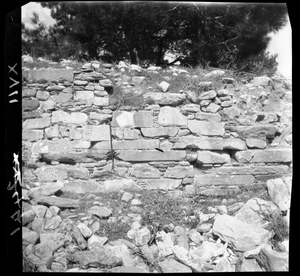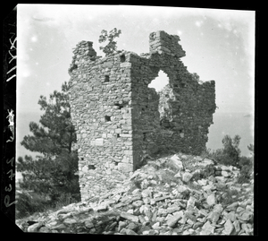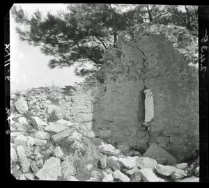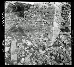 Part of a series of images from the island of Thasos by John ff. Baker-Penoyre during his visit in 1907 to map areas of archaeological interest, particularly the site of Limena, and to conduct investigations of ancient architecture. The original description of the image in the SPHS register reads: "Thasos: Limenas: Acropolis. Interior, N.W. tower".