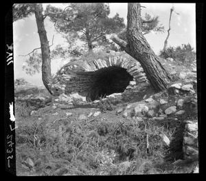 Part of a series of images from the island of Thasos by John ff. Baker-Penoyre during his visit in 1907 to map areas of archaeological interest, particularly the site of Limena, and to conduct investigations of ancient architecture. The original description of the image in the SPHS register reads: "Thasos: Limenas: Acropolis. Interior, cistern, outside".