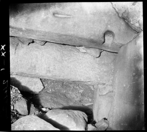 Part of a series of images from the island of Thasos by John ff. Baker-Penoyre during his visit in 1907 to map areas of archaeological interest, particularly the site of Limena, and to conduct investigations of ancient architecture. The original description of the image in the SPHS register reads: "Thasos: Limenas: Acropolis, interior. Subterranean passage to main gateway".