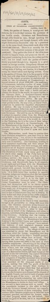 Newspaper clipping on Crete (previously loose in Richard Monckton Milnes, Memorials of a Tour . . . in Greece, London, 1834, illustrations added 1860). Extensive handwritten notes near the beginning of the book, not in Finlay's hand. Illustrations include: 'pencil sketch of the author by a lady' (1848); 'Tempi di Pesto,' painting (5 x 10 cm); 'Psorarus of Corfu' painting (18 x 26 cm); 'Costume of Sinardes,' painting (18 x 26 cm); double-sided drawing of 'Turkish tombs,' pencil sketch 'by William Gell, and overleaf 'Rhodes' in pen and pencil by Gell (13 x 24 cm); double-sided drawing of pencil sketch of 'Church, now mosque' by Gell, and overleaf pencil sketch by Gell of Palace of the Grand Master (13 x 24 cm); 'Souliots,' coloured drawing by Gell of (7 x 13 cm), 'Via Mala,' hand-painted engraving (18 x 21 cm), newspaper cutting 1st Jan 1866 pasted in re: kidnapping by brigands (14 x 18 cm); 'Pnyx,' pencil drawing by Gell (13 x 18 cm); 'Athens,' watercolour by Gell (22 x 34 cm); news cutting on excavations at Athens.